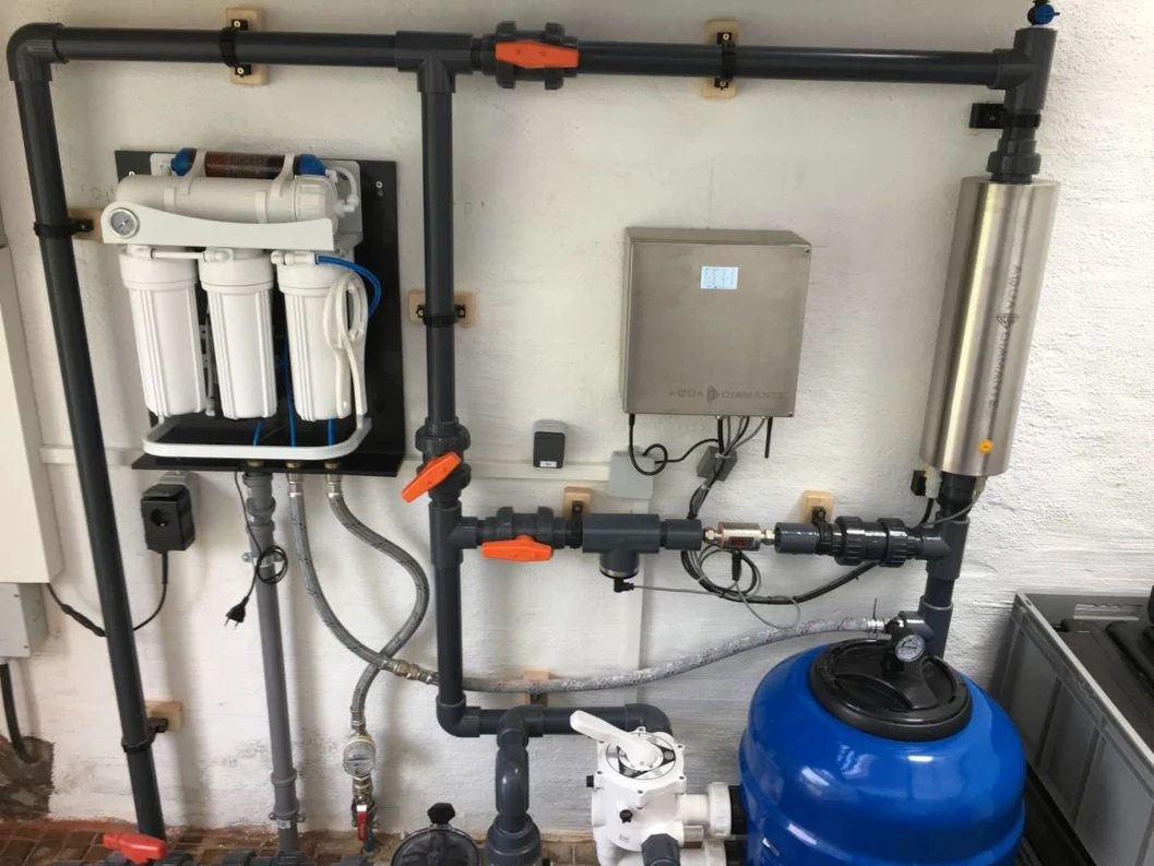 Um das Becken kalkfrei zu halten, ist zur Befüllung eine Enthärtungs- oder Umkehrosmose-Anlage notwendig. Für die Nachfüllung wird eine kleine Umkehrosmose-Anlage benötigt.